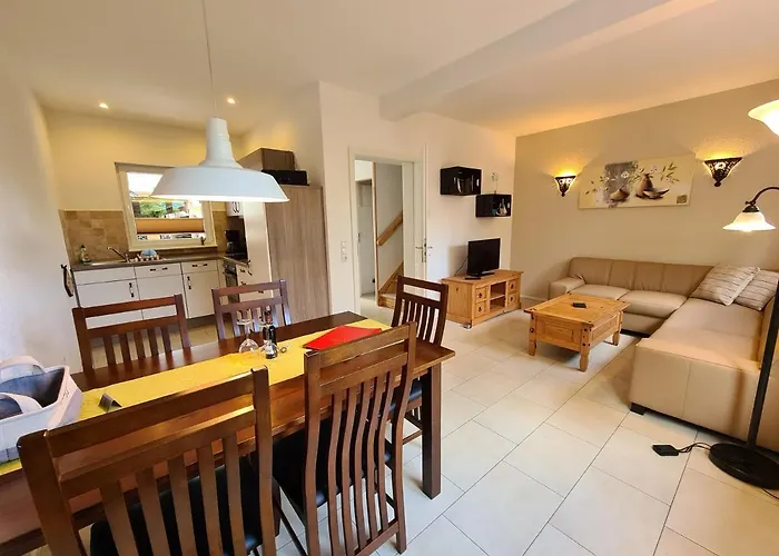 Die 2-Zimmer- Ferienhaus Dat Fischerhus liegt in einer Entfernung von 25 Minuten zu Fuß vom Leuchtturm Dahmeshöved und bietet Wassersportaktivitäten, Windsurfen und Wandern für aktive Gäste. Die Villa in Kellenhusen verfügt über Parkplätze und eine Terrasse mit Aussicht auf den Innenhof.
